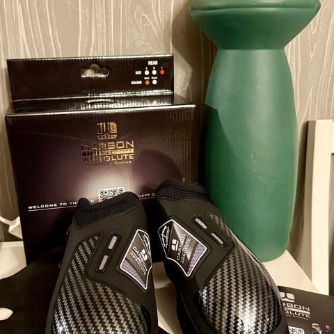 Voimakkaita iskuja kestävää anti-shock carbon -materiaalia. Vuorena AEROX ilmaa kuljettava neopren -materiaali. Joustava tuplatarrakiinnitys.