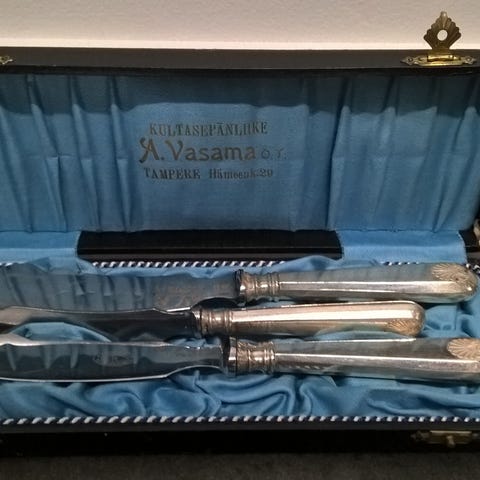 Vanhat Musla- veitset hopeakahvoilla (813), pituus 23.2cm.