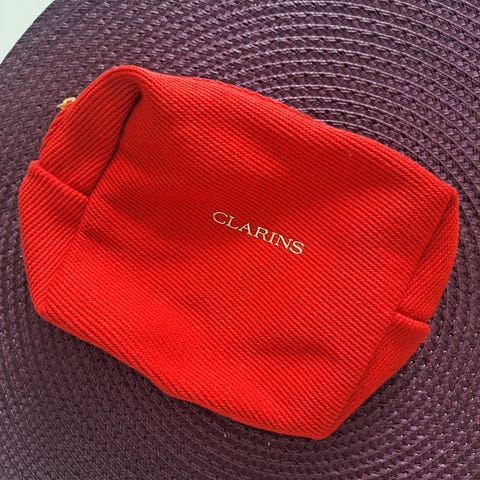 • Punainen Clarins-meikkilaukku