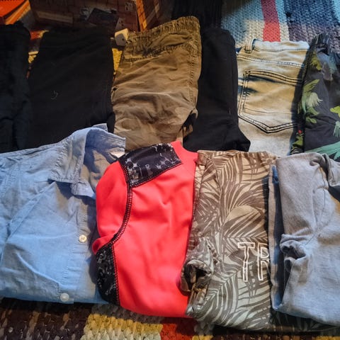 Vaatteet on kokoluokkaa 122-134, kaikkia käytetty samanaikaisesti. Ehjiä ja siistejä, jotain pientä jälkeä voi jossain olla,mutta ei mitään silmiinpistävää.
