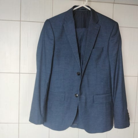 Myytävänä Createn kaksi nuoren miehen puvun takkia ja kolmet housut, slim fit. Keskenään samansävyisiä sinisiä. Käytetty 1 - 2 kertaa.