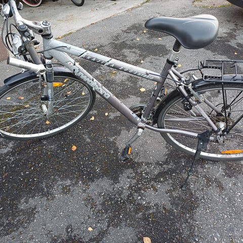 Polkimissa kenkälukot. Renkaissa hyvin kulutuspintaa. Todella siistin näköinen pyörä, jossa käyttö ei näy.