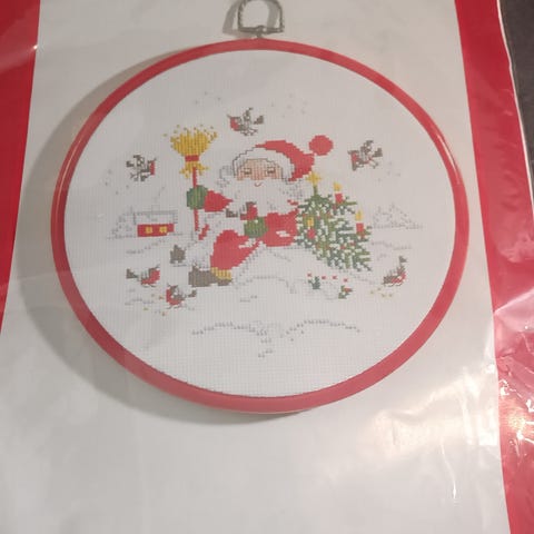 Lapsen syntymä-ristipistotyö. Paketissa langat, pohja kangas ja ohjeet. Koko 30x25cm. Nouto tai postitus.
