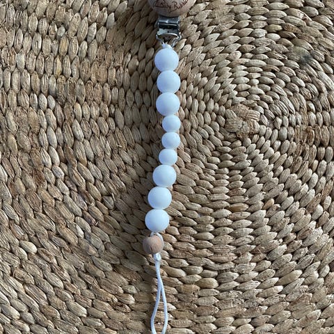 Tuttinauha,uusi,virkattu.Vauvalanka.Turvallinen,silikonirengasNauhan saa kiinnitettyä vaatteeseen.