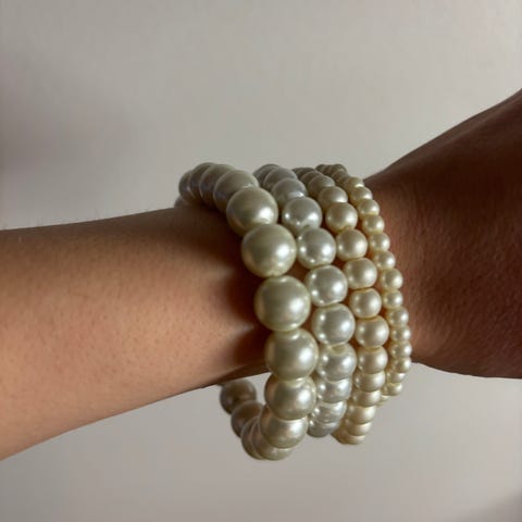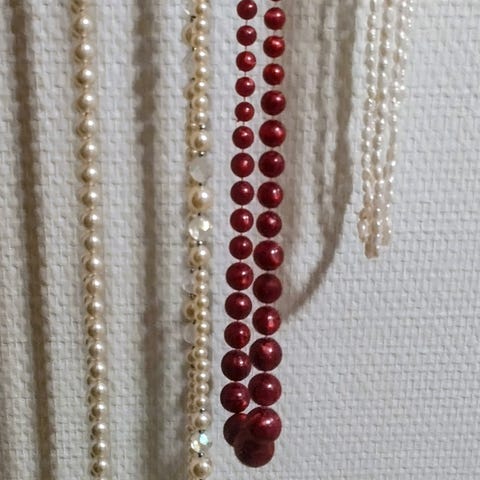 Punainen helmikaula-ja rannekoru. Magneettilukko