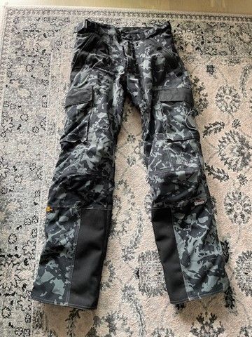MP housut, kovikkeet polvissa (saa pois). Tarrakiristyksiä vyötäröllä ja lahkeen suussa. Noin 170 cm pitkä tytär käyttänyt muutamia kertoja