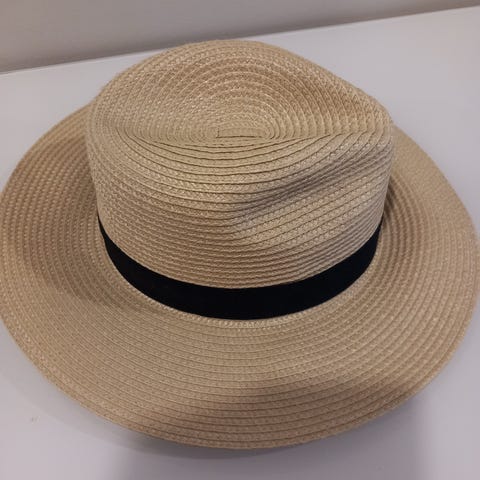 Vuorellinen, puuvillainen hattu. Koko 59cm. Lierin leveys 9 cm.