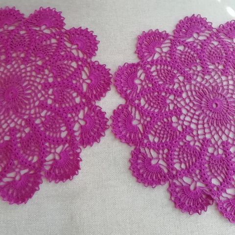 Uudet keltaiset käsin virkatut yöpöytäliinat 2 kpl. Halkaisija n. 32 cm, 100 % puuvillaa.