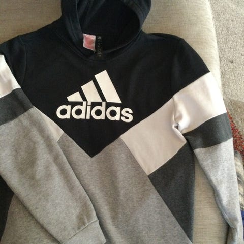 Harmaan hupparin vaaleassa osassa on tarkalla silmällä katsottuna pari harmahtavaa jälkeä, mutta muutoin ovat siistejä.