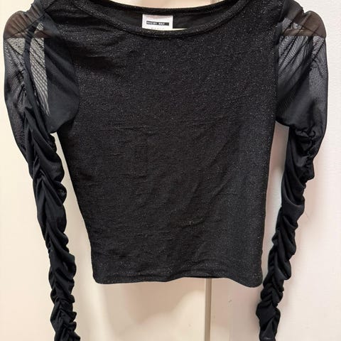 Nätti bileisiin crop lyhyt mallinen glitter toppi, takana vetoketju.