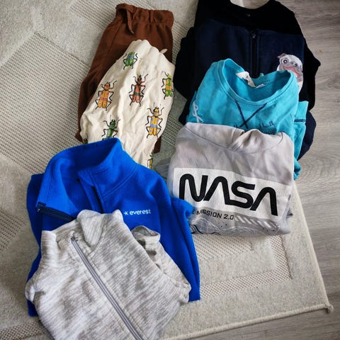Mukana kahdet legginssit, yhdet pitkälahkeiset ohuet olohousut ja yhdet fleesehousut.