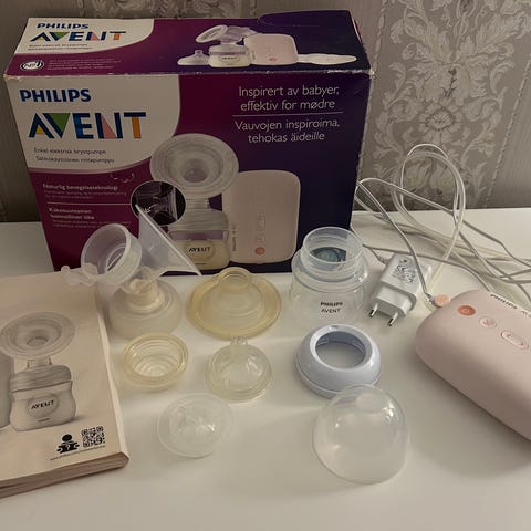 Toimiva ja käytännöllinen Philips Avent manuaalinen rintapumppu. Kaikki osat tallella. Myös alkuperäinen pakkaus ja käyttöohjeet löytyy.
