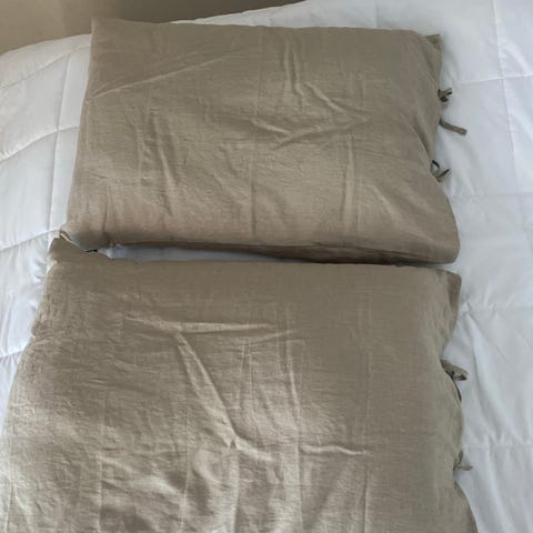 Toisessa pehmusteessa sauman kohdalla ollut reikä, mutta ommeltu umpeen. Muuten patjat ovat hyvässä kunnossa.