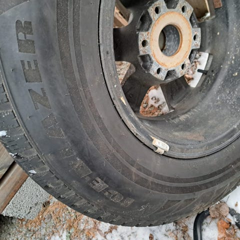 Varapyöränä ollut vanne/rengas. Renkaassa muutama milli vielä pintaa. Vanteen hinnalla varapyöräksi. 18"