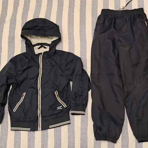 Myydään yhdessä hyväkuntoiset välikausitakki ja välikausihousut. Takki on Ticket to heaven merkkinen, lapun mukaan koko 122,mutta isoa kokoa, vastaa 128. Takki sadetta pitävä, teipatut saumat. Housut Reimatec merkkiset, koko 128. Vedenpitävät ja teipatut saumat. Hyä välikausisetti seuraavalle.