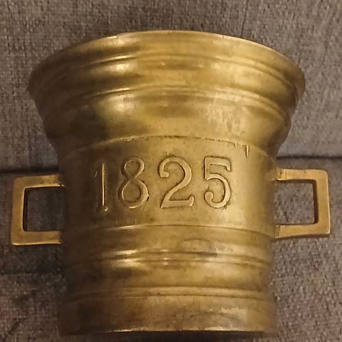 Antiikkinen huhmare. Mortteli. Korkeus 10cm, halkaisija 8cm.