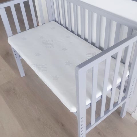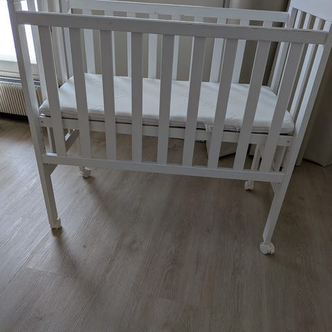 Puinen ensisänky vauvalle + patja ja 4 lakanaa