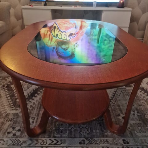 Myydään puinen soikea sohvapöytä. Kunto hyvä, paitsi yhteen kohtaan jäänyt mukista jälkeä. Näkyy kuvassa. Ei eläimiä eikä tupakointia. Allergiakoti.