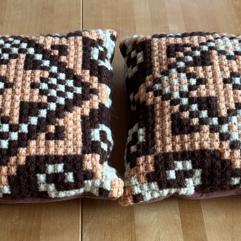 Myydään ruskea 50 cm x 50 cm kokoinen ja 65 cm x 65 senttimetriset design/lattia-tyyny. Käyvät myös istuinalustana.