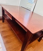 Myydään jykevä sohvapöytä. Pähkinäpuuta. Yksi vetolaatikko. Kunto hyvä. Mitat 120x65x55. Nouto Pakkala, Vantaa. Mmm.