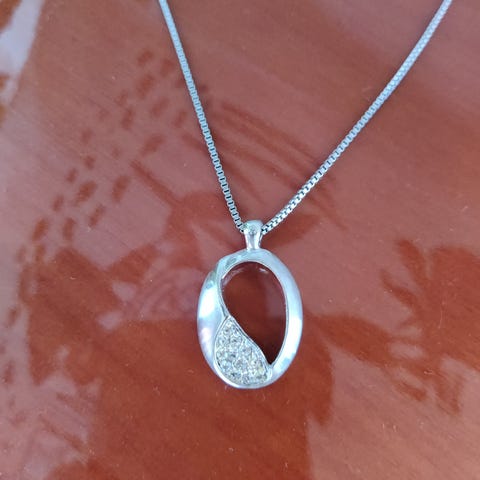 Myydään kullanvärinen kaulakoru, jossa soikeat metallirenkaat sekä valkoiset helmet. Pituus ~ 44cm.