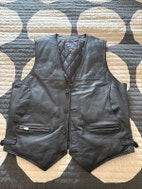 Myyntiin uusi ja käyttämätön nahkaliivi sekä teemaan sopiva uusi t-paita.
