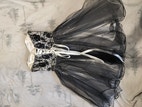 Musta valkoinen juhla mekko "korsetti" ylä osalla. Hyvä kuntoinen. Paljetteja rinta osassa ja helmassa. Vetoketju ja nyöritys.