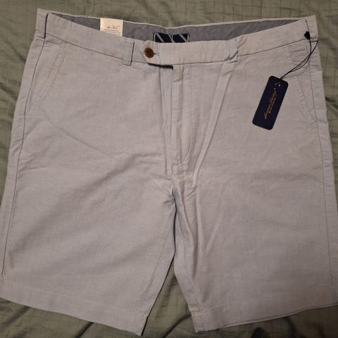 California Rebublic clothes miesten khakin väriset reisitasku shortit, koko 38 tuumaa (vyötärö mitta on n. 102 cm, XL-XXL) Monta taskua ja vyölenkit. Made in USA. Siistit, ehjät ja vähän käytetyt.