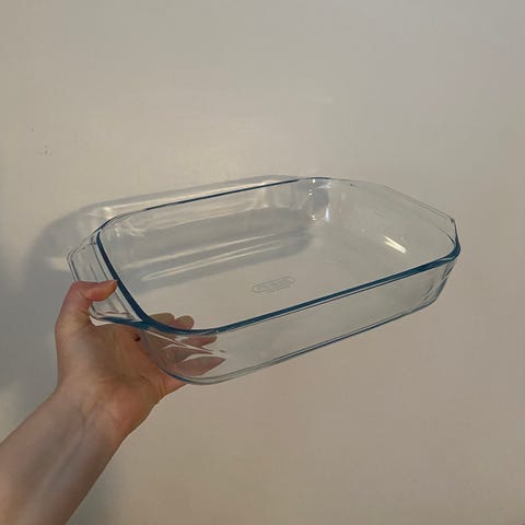 Myydään muutaman kerran käytetty, pieni ovaalin muotoinen Pyrex lasivuoka