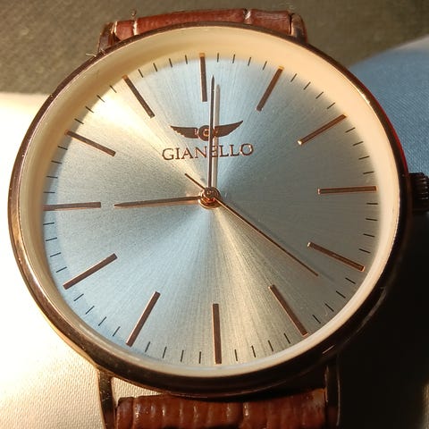 Teksti pohjassa: "Giallo design Gian Matteo K 8352 A Swiss Made, Made on Earth by Man"