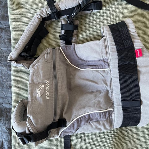 Ok kuntoinen manduca vauvareppu, rinnalla kannettavaksi tarkoitettu. Ehjä, mutta ajanpatinaa on.