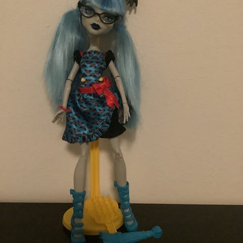 Suurin osa tarvikkeista tallella, puuttuu vain pienet siniset laput ja nukelta kaulahuivi. Käytettynä ostettu, mukana ei tullut näitä puuttuvia osia.