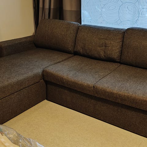 Taittuva vuodesohva, jonka saa näppärästi levitettyä. Koko 100 x 160 x 85 cm, levitettynä 205 x 160 x 35 cm. Päällisen voi irroittaa ja pestä. Pientä haalistumista, pieniä tahroja ja kosteusjälkiä patjan alapuolella. Ollut meillä kuitenkin sisäkäytössä vierassänkynä. Levitettynä rämpsähtää kerran, kun asettuu makuulle, sen jälkeen äänetön :). Vain nouto.