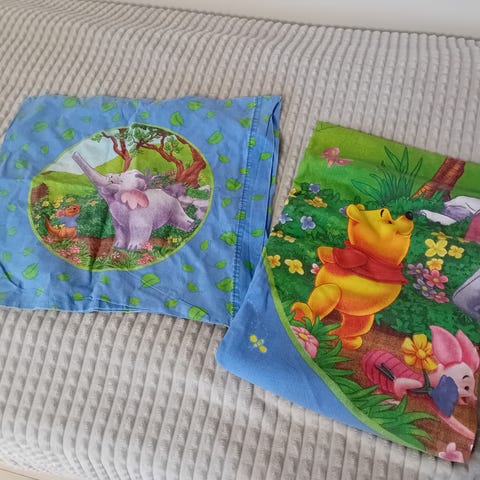 Myydään Disney vaaleansininen Nalle-Puh pussilakana, koko 120x150cm, sekä tyynyliina, koko 40x60cm, materiaali on 100% puuvillaa. Koko setin hinta 9€. Seinäjoki.