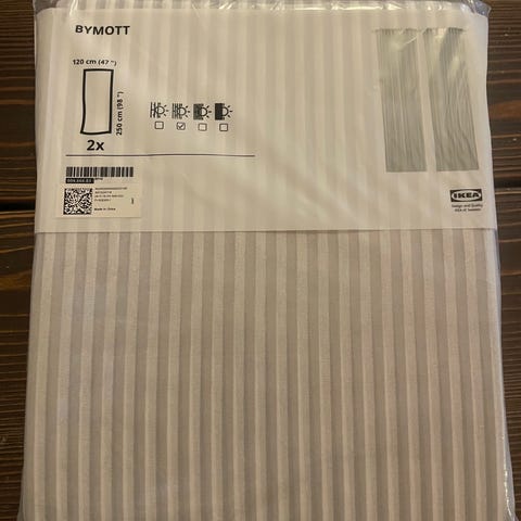 IKEA Bymott verhot (2 kpl) ja setti verhokappoja