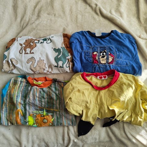 Kuvan laadukas Sanetta yöpaita, yöasu, pitkähihainen paita ja housut, koko 116 cm. Uutena ostettu, hyväkuntoinen, siisti yöasu, ei ole paljon pidetty. Kuvassa 4 on pieni virhe/ reikä, jonka bongasin, lähes huomaamaton. Pesty allergiatestatulla, hajusteettomalla pesuaineella, taloudessa ei tupakoida. Materiaali: 100% puuvillaa. Nouto tai postitus. Jos löytyy muuta, niin yhdistetään samaan lähetykseen.