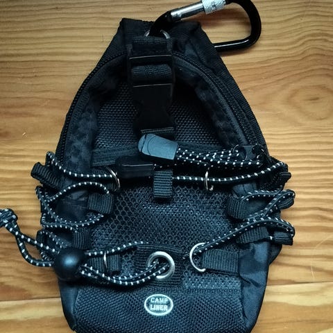 Beigen värinen laukku, käytetty jonkin verran ja kissa vähän purrut.