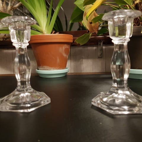 1970 luvun kirkas lasi kynttilänjalka 2 kpl ruotsalainen mutta priima