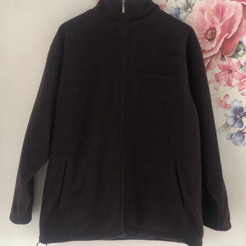 Ulkoilufleece. Tikattu etuosa, muuten lämmintä fleeceä. Vetoketjutaskut, ja lämmin karvakaulus.