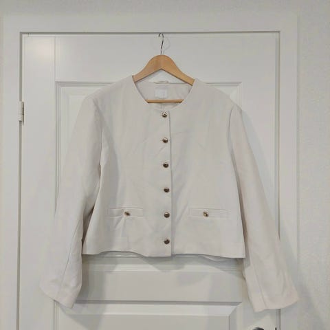 Naisten Jakku, koko M/L, kevyt vuori, edessä napit, mitta kainalosta kainaloon 55cm edestä mitta, hihan mitta kainalosta hihan suuhun 31cm, mitta olalta helmaan 63cm, ehjä.