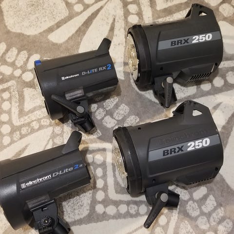 Setti sisältää alkuperäisessä kovassa kuljetuslaukussa 2 kpl Style 600S ja yhden vanhemman Elinchrom 1000 studiosalaman. Ikää on joitaitakin vuosia, mutta uudempia Style salamia on käytetty koko aikana vain yhdessä kuvauksessa! Tonninen on vähän kokeneempi tekijä. Mukaan virtajohdot ja täsmäysjohto. Nouto Kauniaisista, käteinen tai MobilePay.