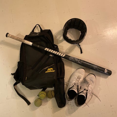 Lienee pesäpallo. koko 48, se meni mulla vuonna 2000-2001, kun rockabilly-bileitä järkkäsin. Jääkiekko, pesäpallo jne.