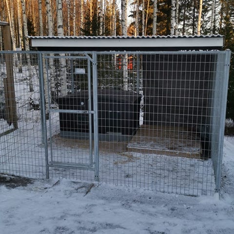 Myydään jo huonossa kunnossa oleva koiratarha (harrastus loppuu). Eli eristettyä koirakoppeja 8kpl. Tarhan mitat noin 4*16m tarkistan vielä.