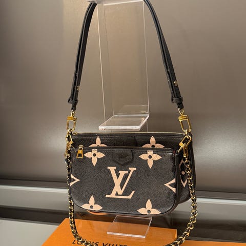 Hieno Louis Vuittonin liukuvärjätty pochette, nahkaisella rannehihnalla!