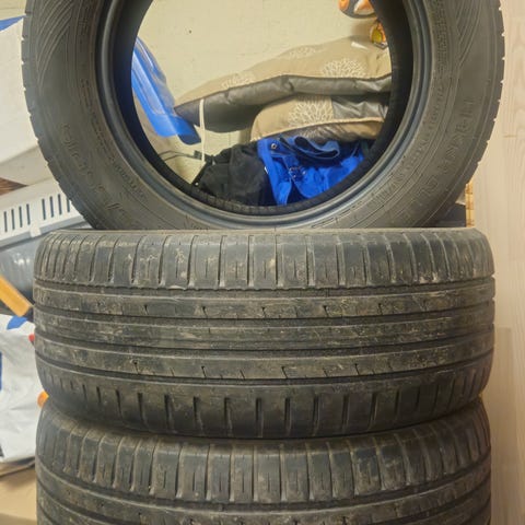Yksi kpl. Ajettu noin 1000 km, kulutuspintaa jäljellä 8 mm. Tämä kesärengas vaihdettiin rikkoutuneen kitkarenkaan tilalle lähimmällä korjaamolla matkan jatkamiseksi ja jäi tarpeettomaksi, kun uusi sopiva talvirengas löytyi.