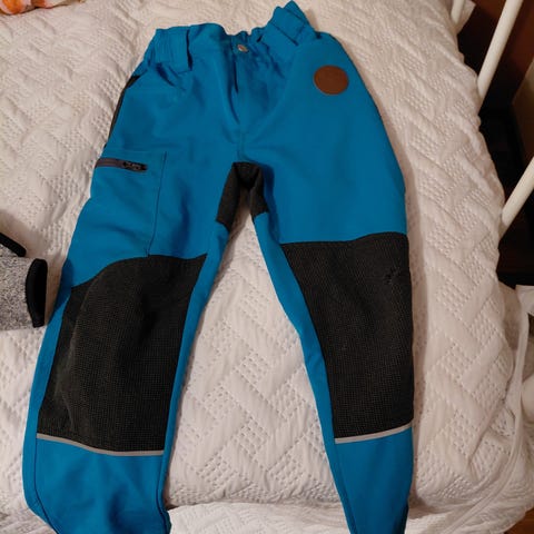 Sadetta kestävät ulkohousut. Polvien kohdalla vähän kulahtaneita.