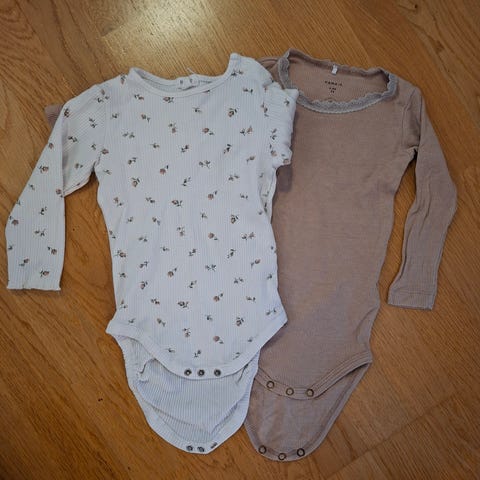 Kaikki hyvässä kunnossa, paitsi bambi aiheisessa bodyssa pupu kuva hieman halkeillut (kuvasta näkee). Ei tahroja/ei lemmikkieläimiä taloudessa.