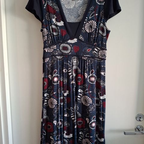 Trikoomekko kesään. Hyvälaatuista trikoota, ei venähdä käytössä. Ihana mustikkamaito -väritys, sini-roosa -raidallinen.