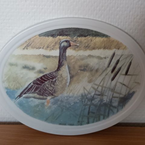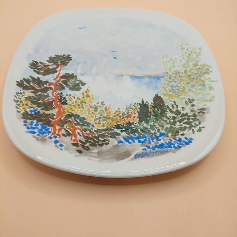 Seinälautasena pidetty, mutta joitakin kolhuja. Halkaisija 24 cm.