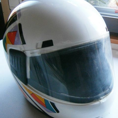 Käytetty, mutta siisti ja tukeva kypärä, vain pari pientä jälkeä takana. Visiiri naarmuton (lähes uusi!). Paino 1500 g. Hihnassa pikalukko. Ilmanottoaukot leuassa ja otsassa.